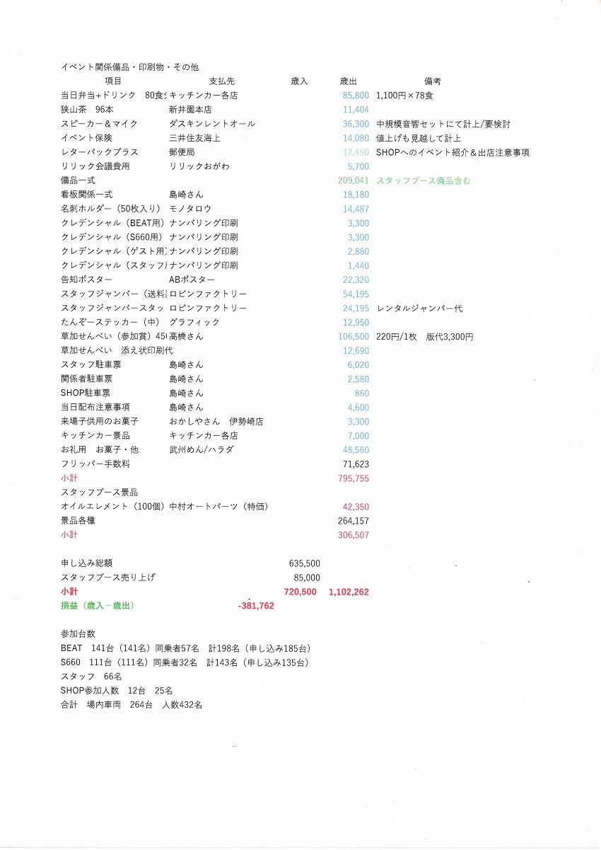 イベント収支・参加台数(人数)報告書